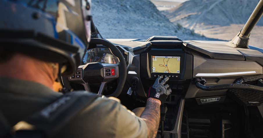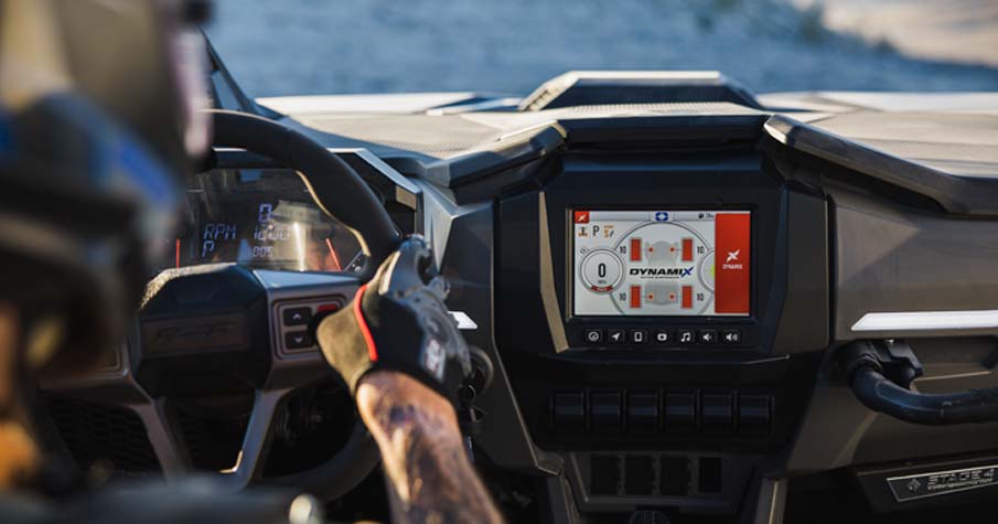 RIDE COMMAND® 7” Glove-Touch Display: DYNAMIX 2.0 Visualizer, Built-In GPS, , Topographic Mapping, Bluetooth & USB Smartphone Connectivity, AM/FM & Weather Radio, In-Vehicle Communications Capable With Optional Sena Headsets, Polaris P.A.S.S Anti-Theft System. Dual-sweep Analog Dials w/ 4" LCD Rider Information Center: User Selectable Blue/Red Backlighting & Brightness, Programmable Service Intervals. Digital Instrumentation: Speedometer, Tachometer, Odometer, Tripmeter, Clock, Hour Meter, Gear Indicator, Fuel Gauge, Coolant Temperature, Voltmeter, Service Indicator and Codes, Seat Belt Reminder Light, Gear Indicator, DC Outlet.