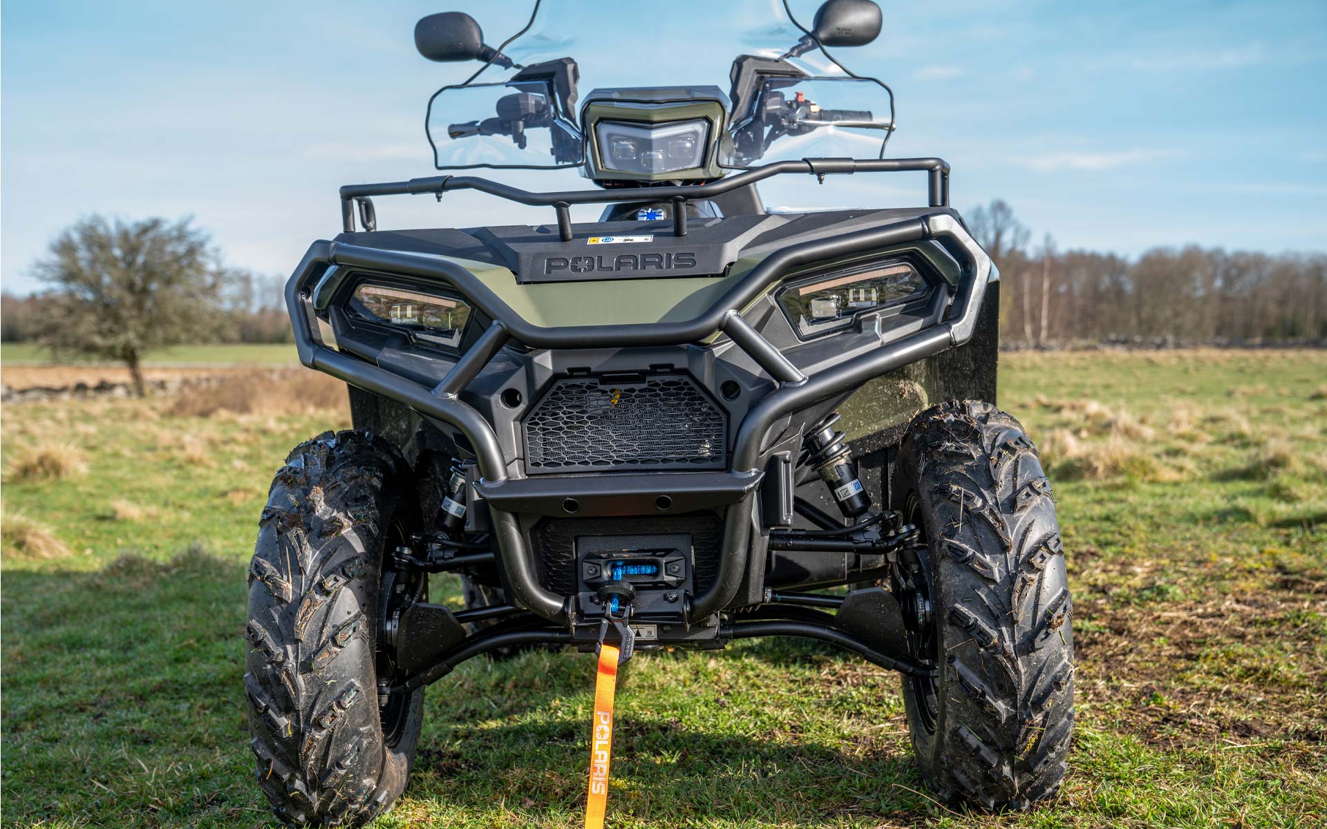 • 3,500 Lb. (1,588 kg) Polaris HD Winch with Synthetic Rope and NEW Auto Stop