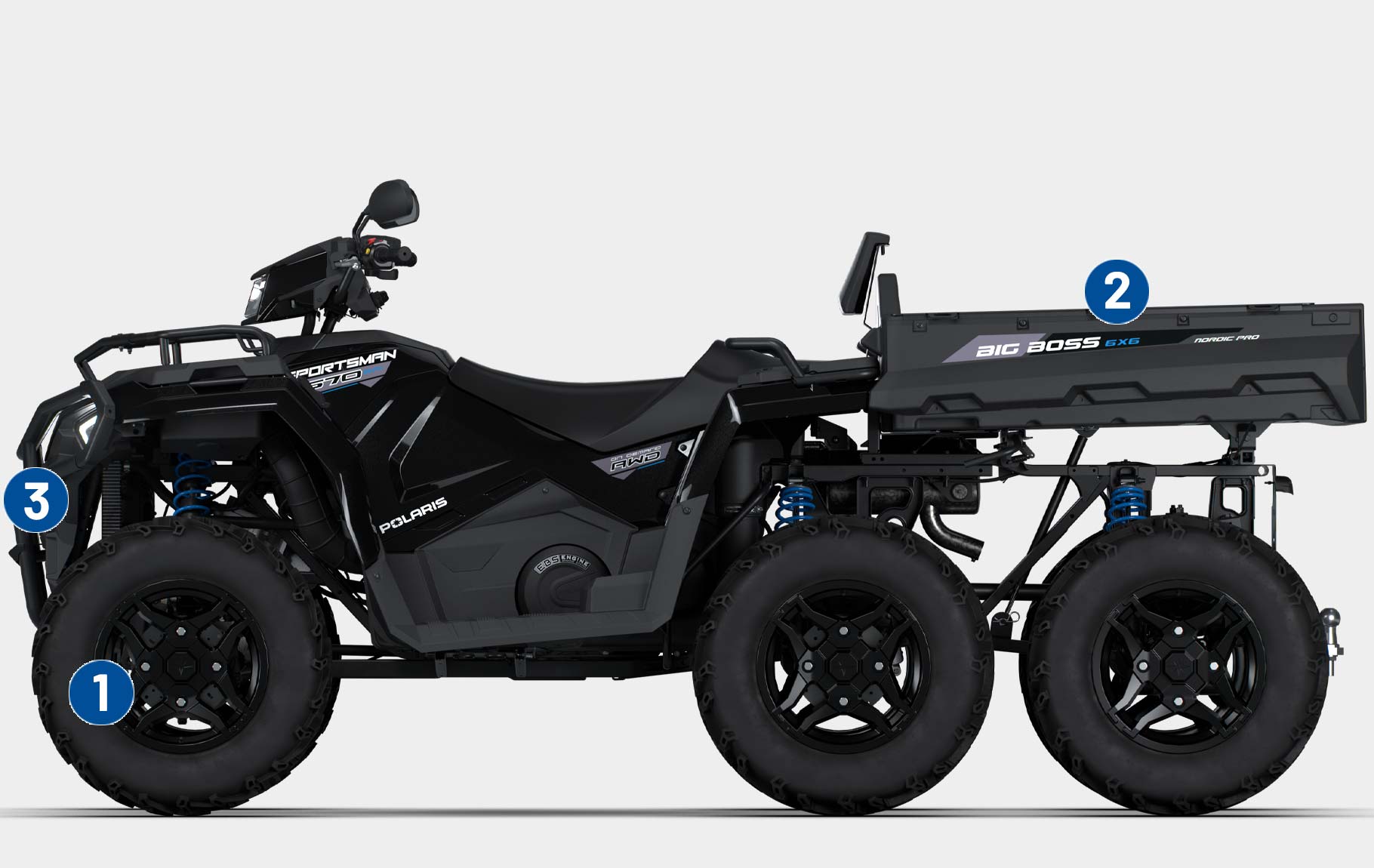 The next-generation Sportsman 6X6 570 is equipped with a bold new design, strengthened chassis and enhanced 6x6 capabilities for a smoother ride and superior comfort.