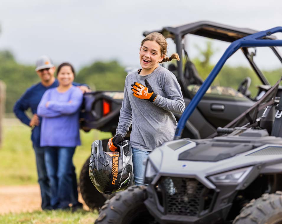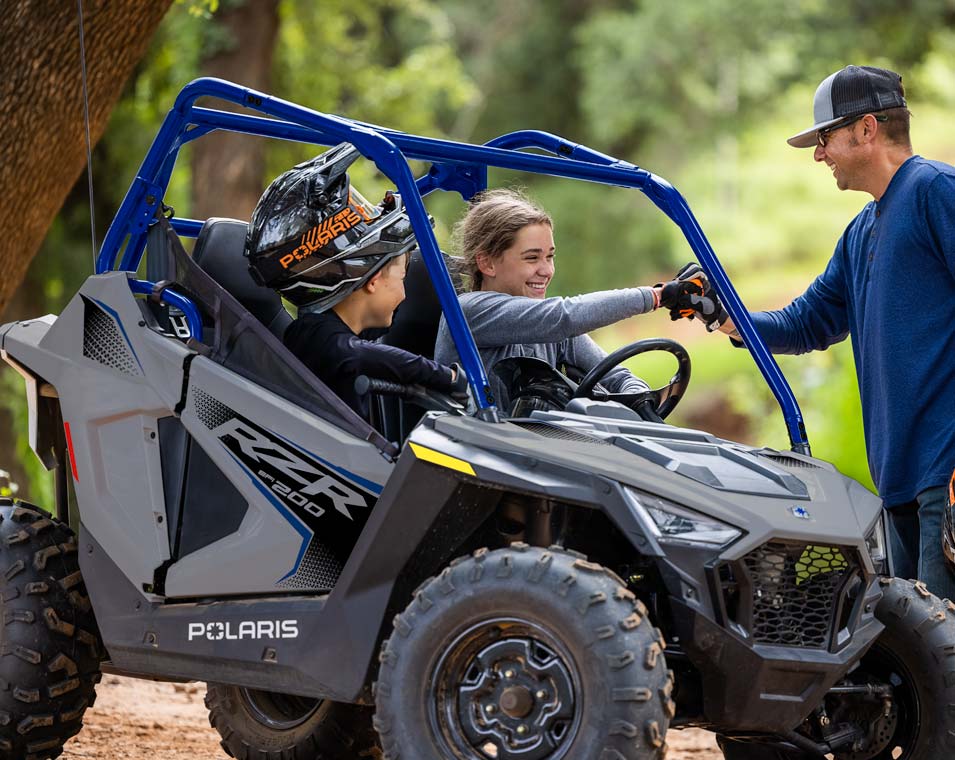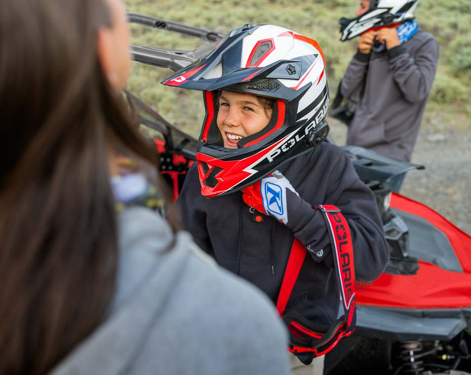 Enjoy peace of mind knowing the RZR comes with industry-leading safety features including a pin code start, adjustable speed limiter, geofencing, safety nets, industry-exclusive safety kit, and helmet aware technology.